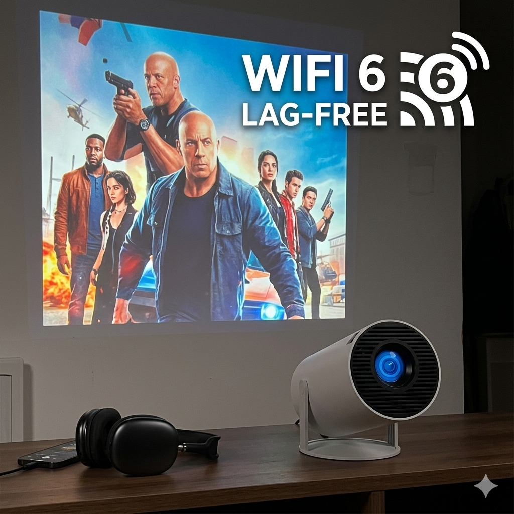 As a tech enthusiast, the WiFi 6 support was the selling point for me. I’ve been streaming 4K Netflix and playing cloud games through the built-in Android system, and there’s zero buffering. The brightness is impressive for its size, especially in a dark room. Plus, the fan is surprisingly quiet—I can actually hear the movie, not the projector!